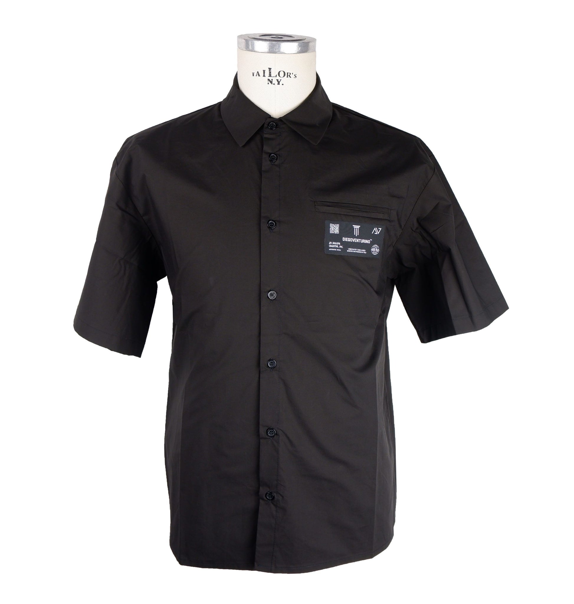 Diego Venturino Elegant Black Cotton Button-Up Shirt