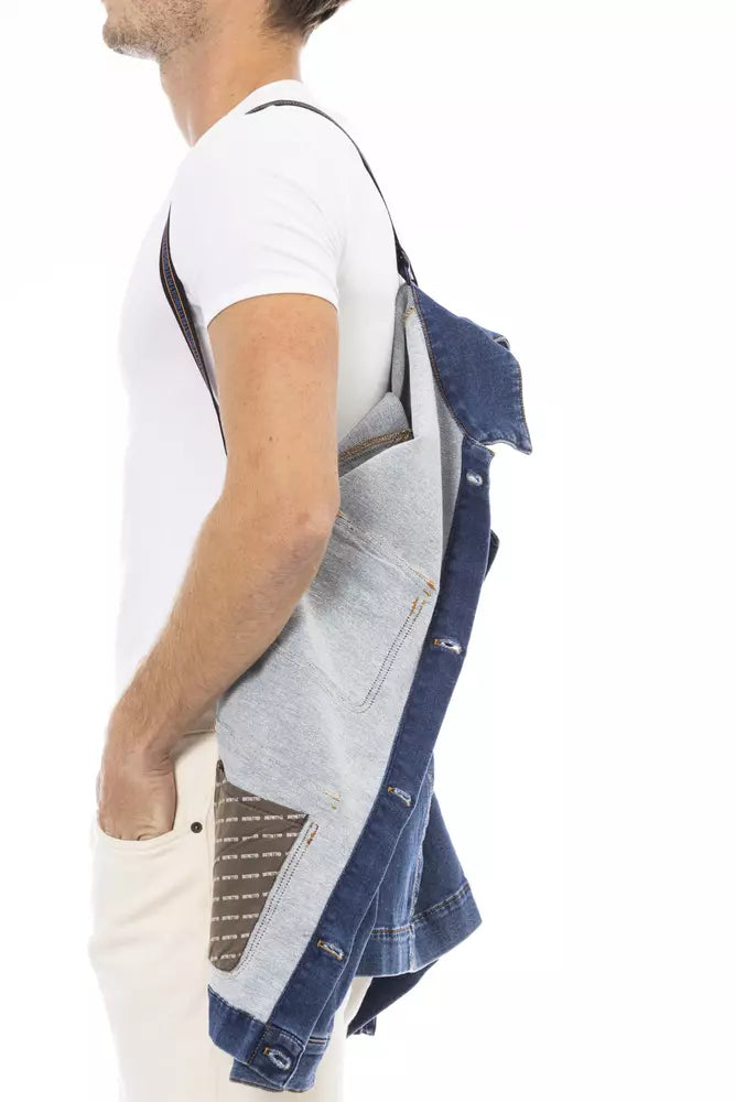 Distretto12 Sleek Blue Jacket with Backpack Braces & Hood