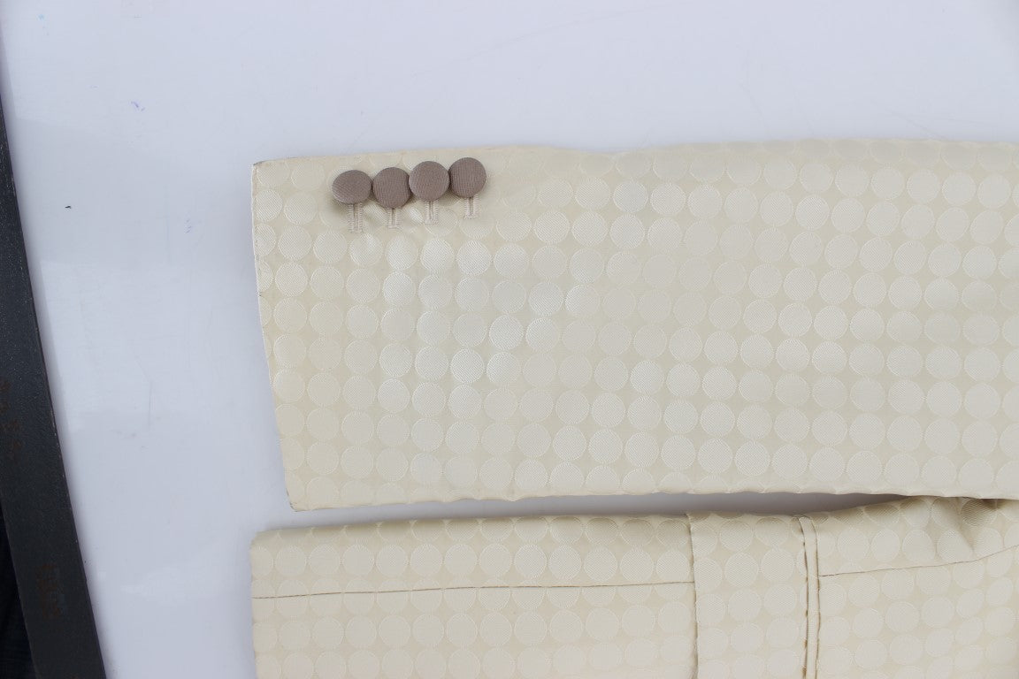 Indulge in sartorial excellence with this Dolce & Gabbana beige polka dotted slim fit 2 piece blazer and vest. Crafted from a luxurious blend of polyester and silk, it embodies Italian craftsmanship and astounding attention to detail. Elevate your wardrobe with this stunning piece from the exclusive MainLine Dolce & Gabbana collection, known for its slim fit that flatters the silhouette, intricate gold detailing, and high-quality materials. Perfect for those who appreciate the blend of classic style with modern refinement.