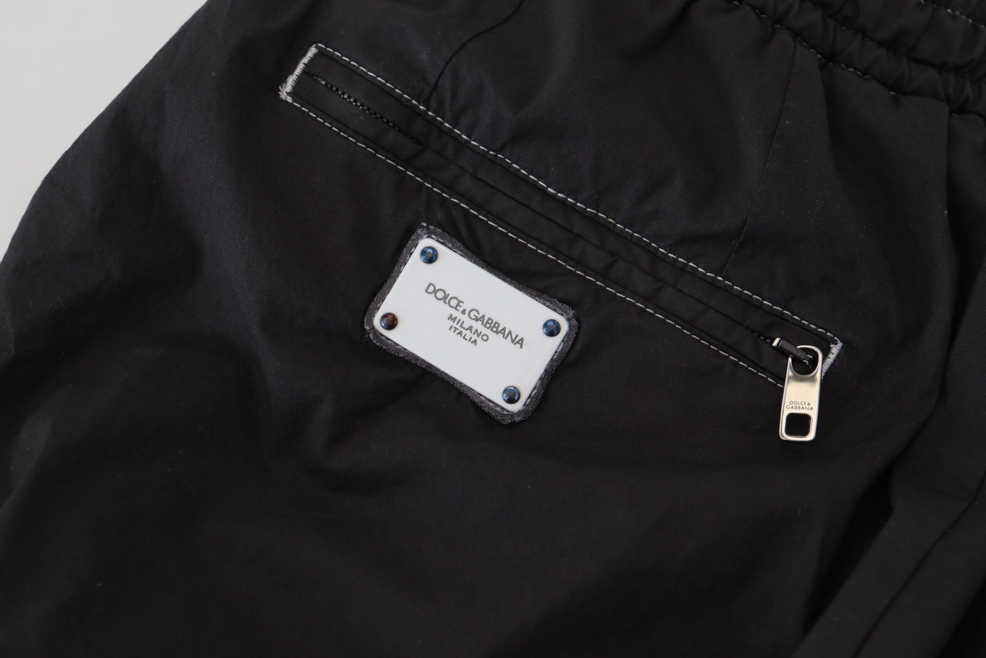Experience the epitome of Italian elegance with these stunning tapered trousers from Dolce & Gabbana. Expertly crafted with a blend that assures both comfort and a tailored fit, these pants are an essential addition to the modern man’s wardrobe. The sleek black hue is versatile, ready to be paired with your favorite shirts and accessories for any occasion.