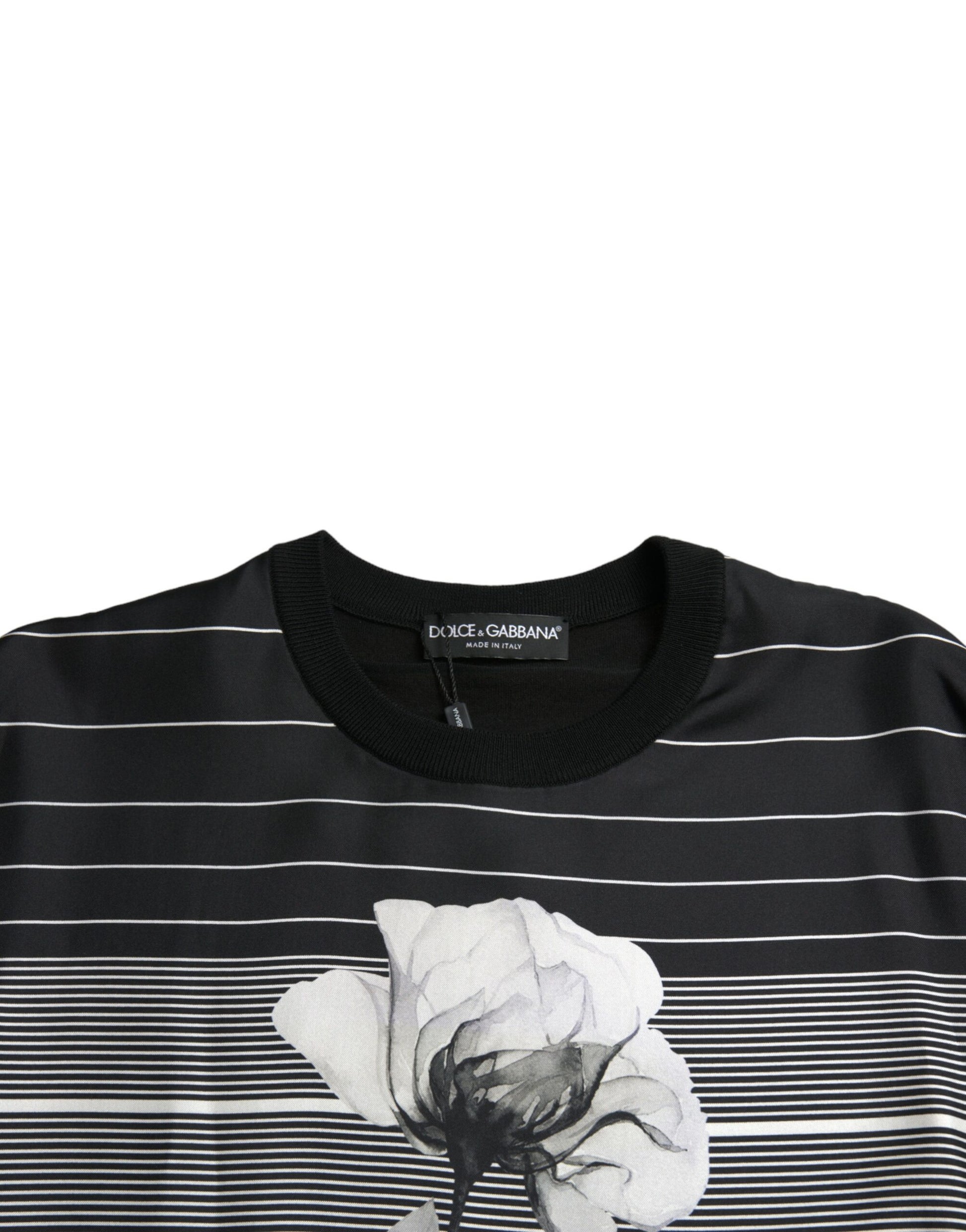 Dolce & Gabbana Black Floral Print Wool Silk Pullover Sweater