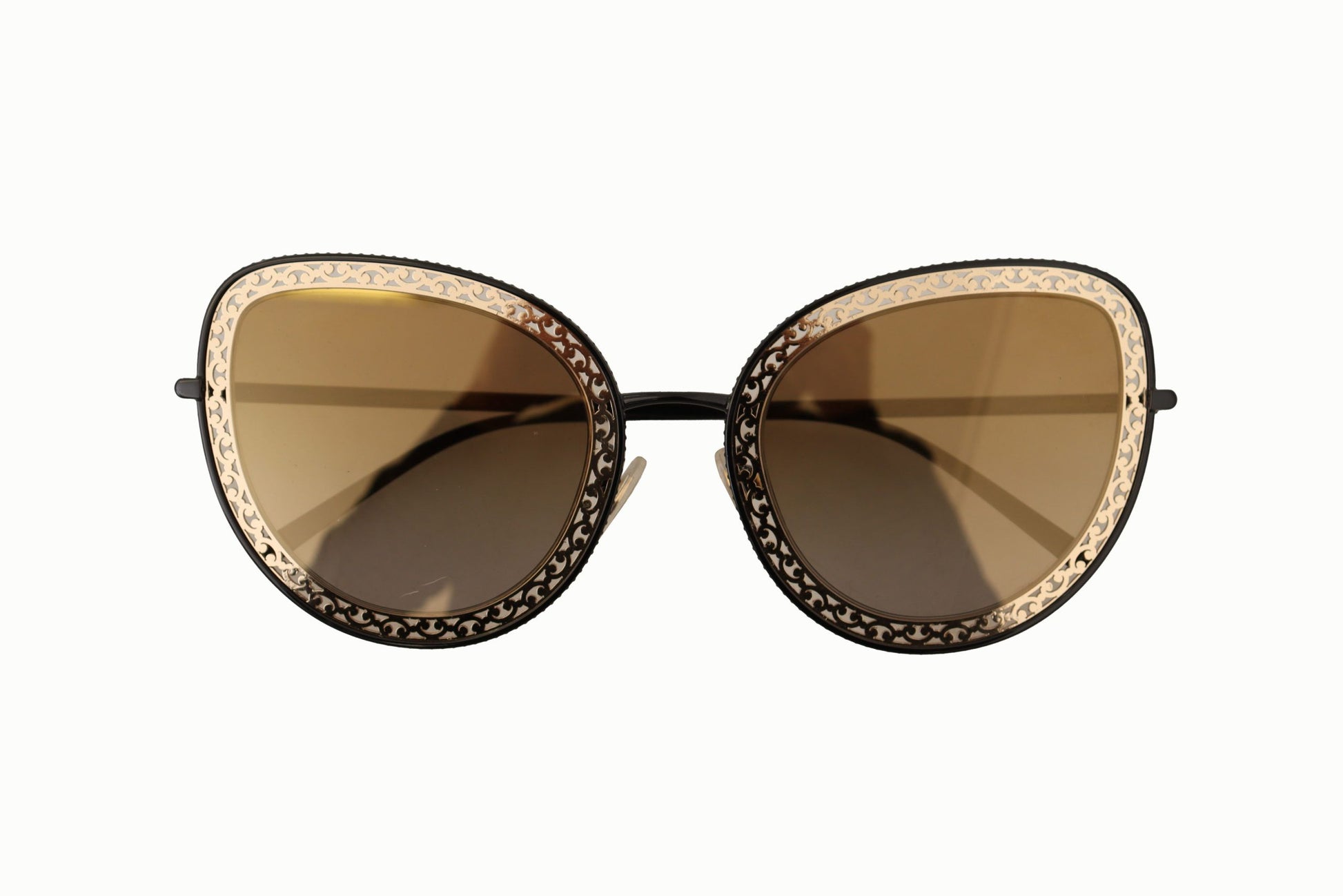 Step out in style with these luxurious and unique sunglasses by Dolce & Gabbana. Experience true Italian craftsmanship with these 100% Authentic lightweight metal shades, boasting a distinctive lace pattern and perfect for those seeking a blend of contemporary design and classic elegance. Gradient brown lenses provide 100% UV protection, ensuring both fashion and function.