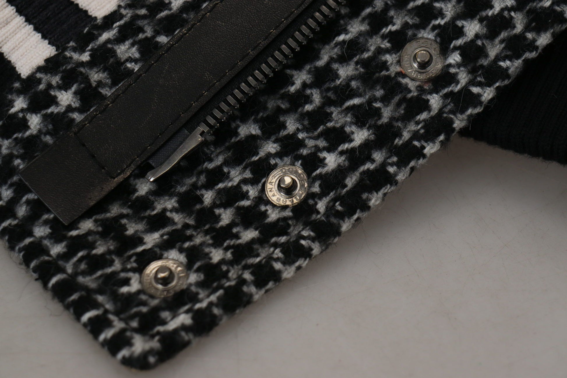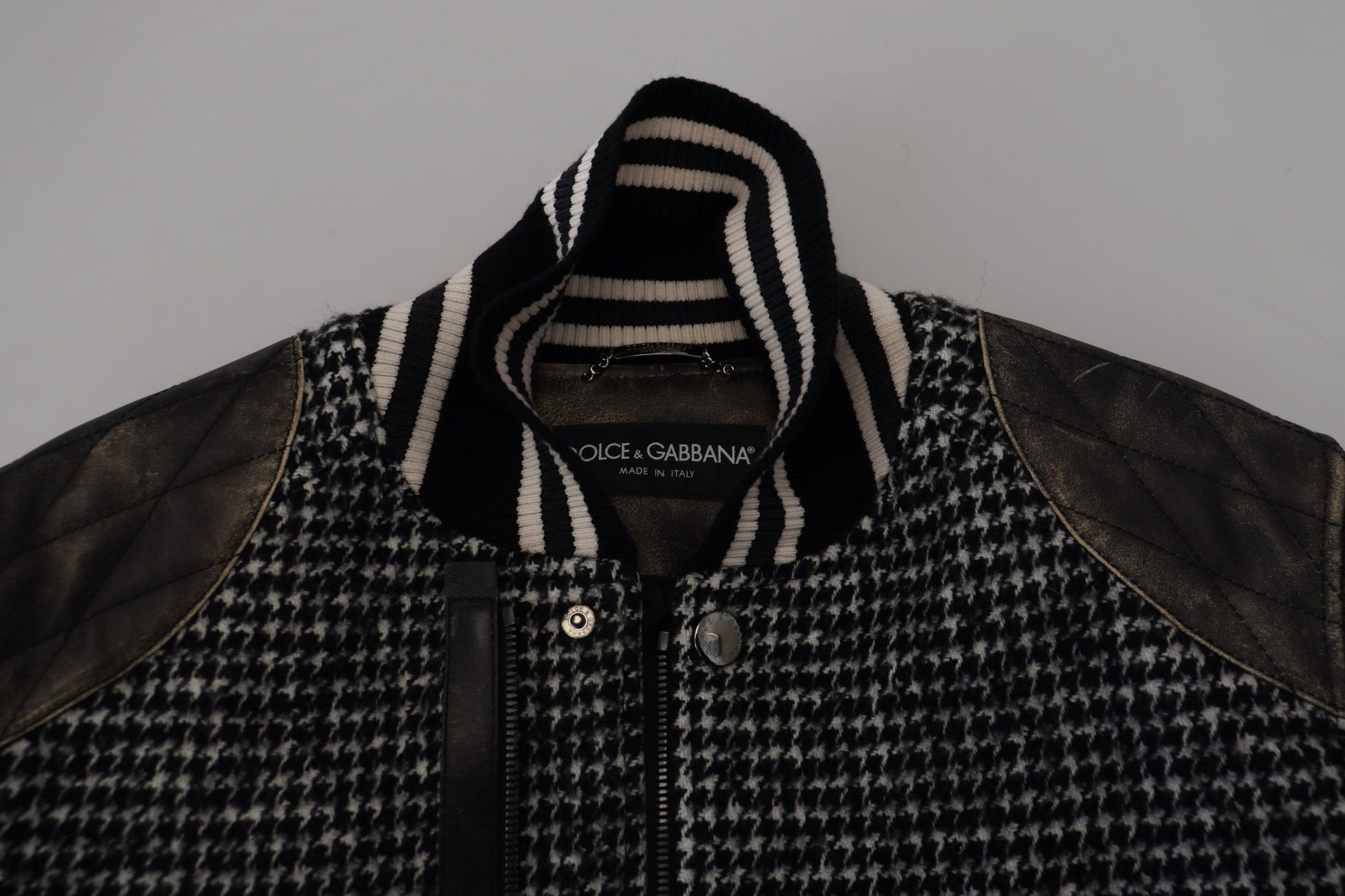 Dolce & Gabbana Multicolor Houndstooth Leather Bomber Jacket