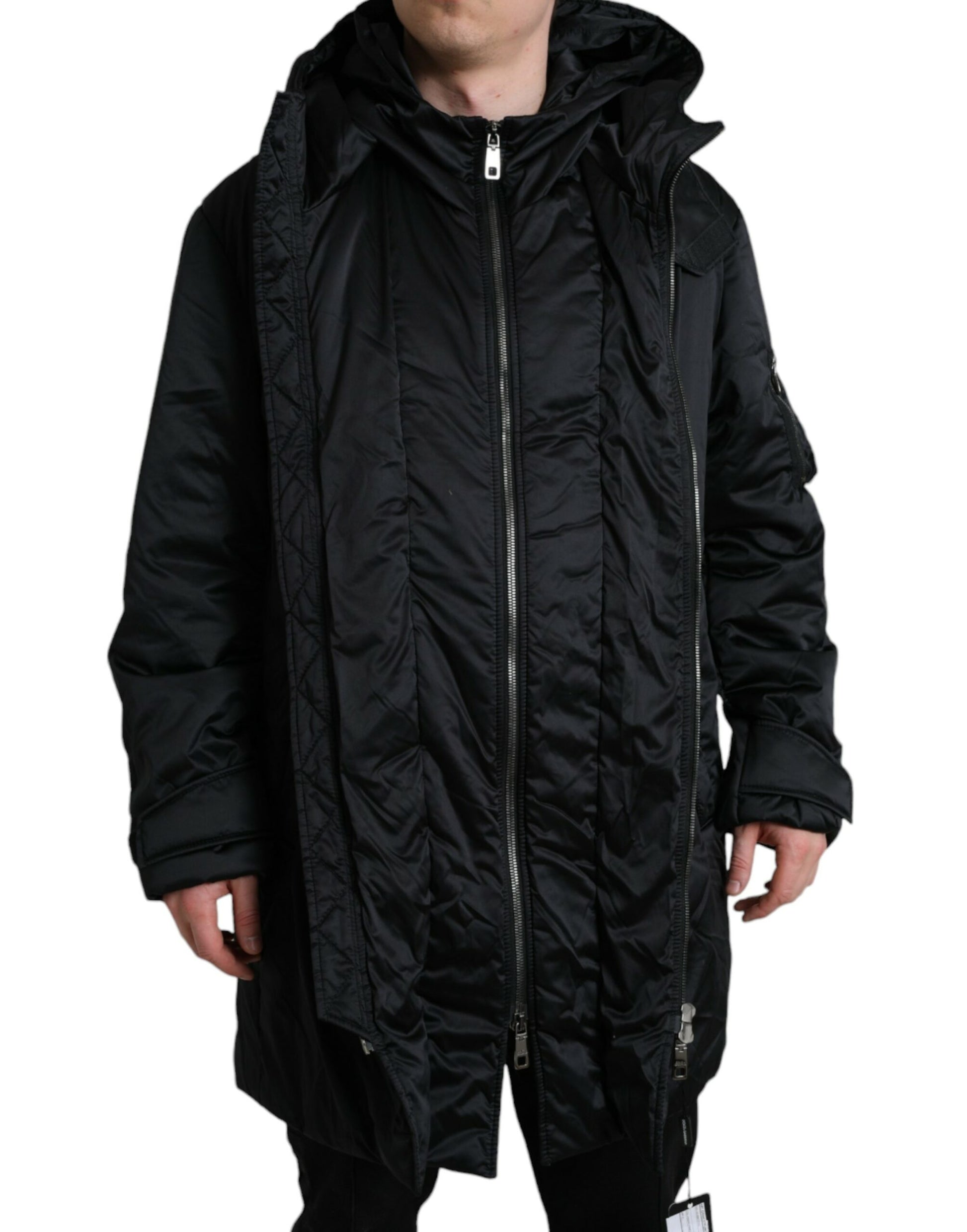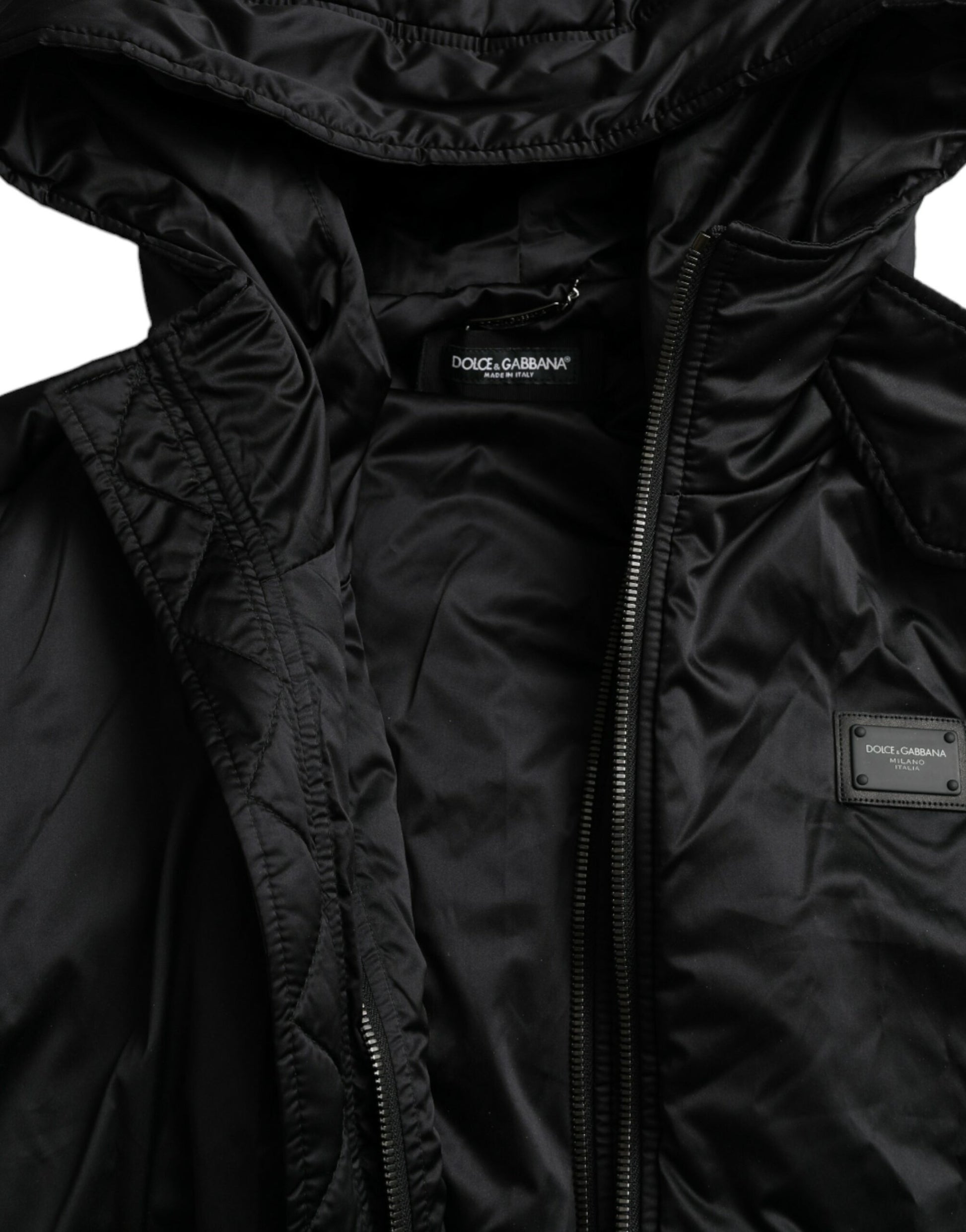 Absolutely stunning, 100% Authentic, brand new with tags Dolce & Gabbana jacket featuring black, polyester, logo plaque, hooded, full zip fastening, long sleeves and pockets.