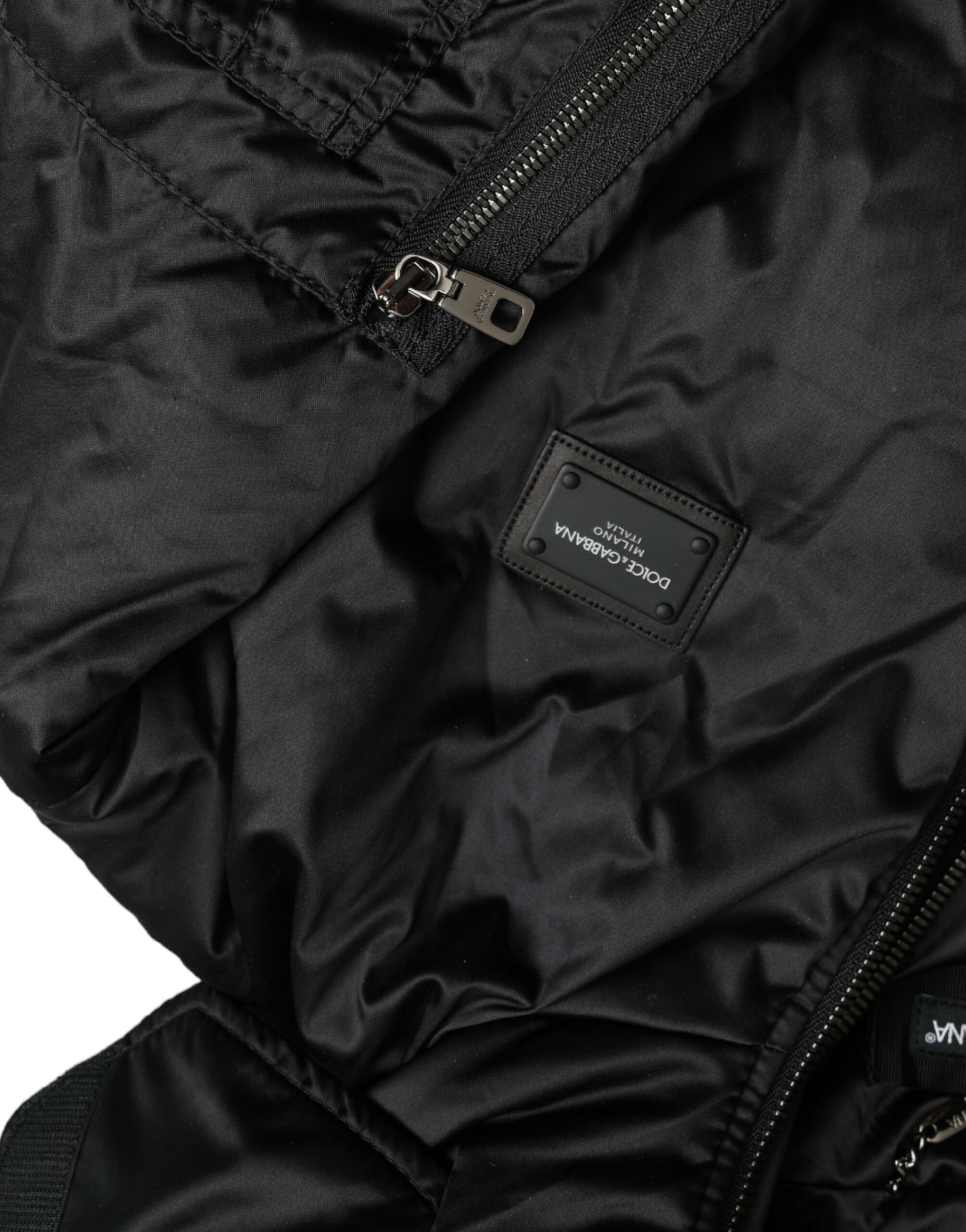 Dolce & Gabbana Black Polyester Hooded Logo Full Zip Jacket
