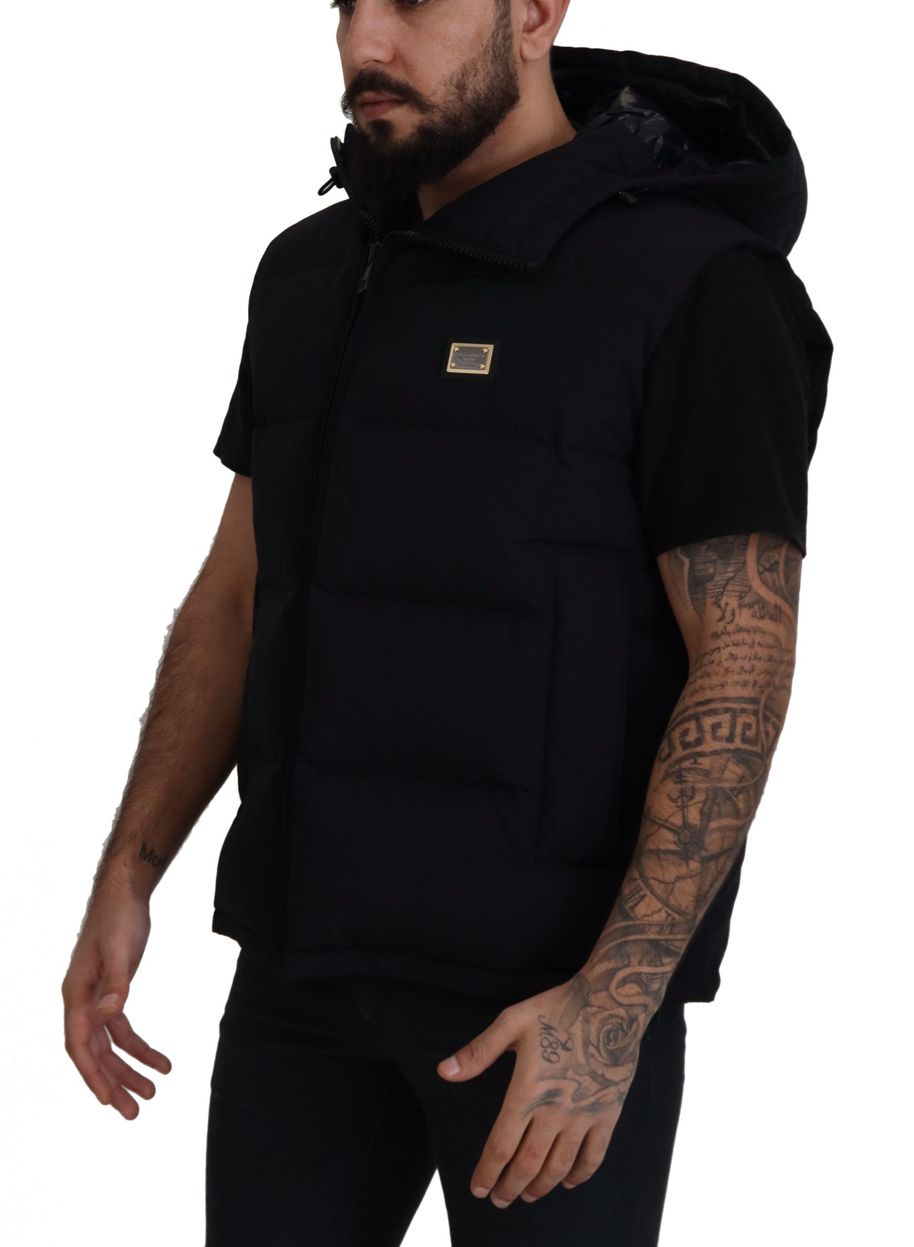 Dolce & Gabbana Sleek Black Hooded Short Sleeve Jacket