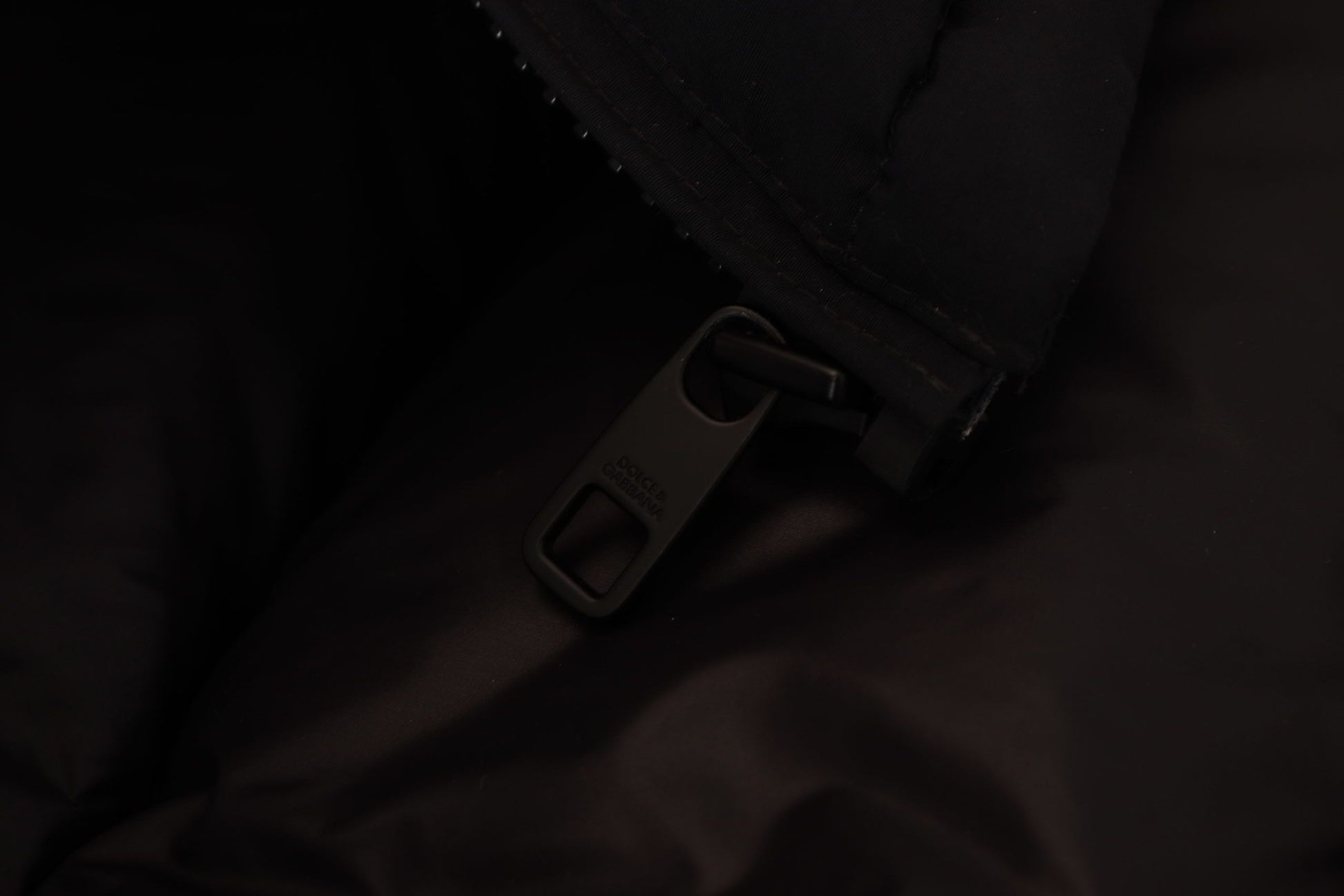 Step out in style with this absolutely stunning, 100% Authentic Dolce & Gabbana short sleeve polyester jacket. This sleek black jacket features a convenient full-zip closure and an adjustable hood, embodying versatility and sophistication. The signature logo plaque adorns the chest, adding an unmistakable touch of luxury. Crafted in Italy, this piece blends high fashion with practicality, making it a perfect addition to your wardrobe.