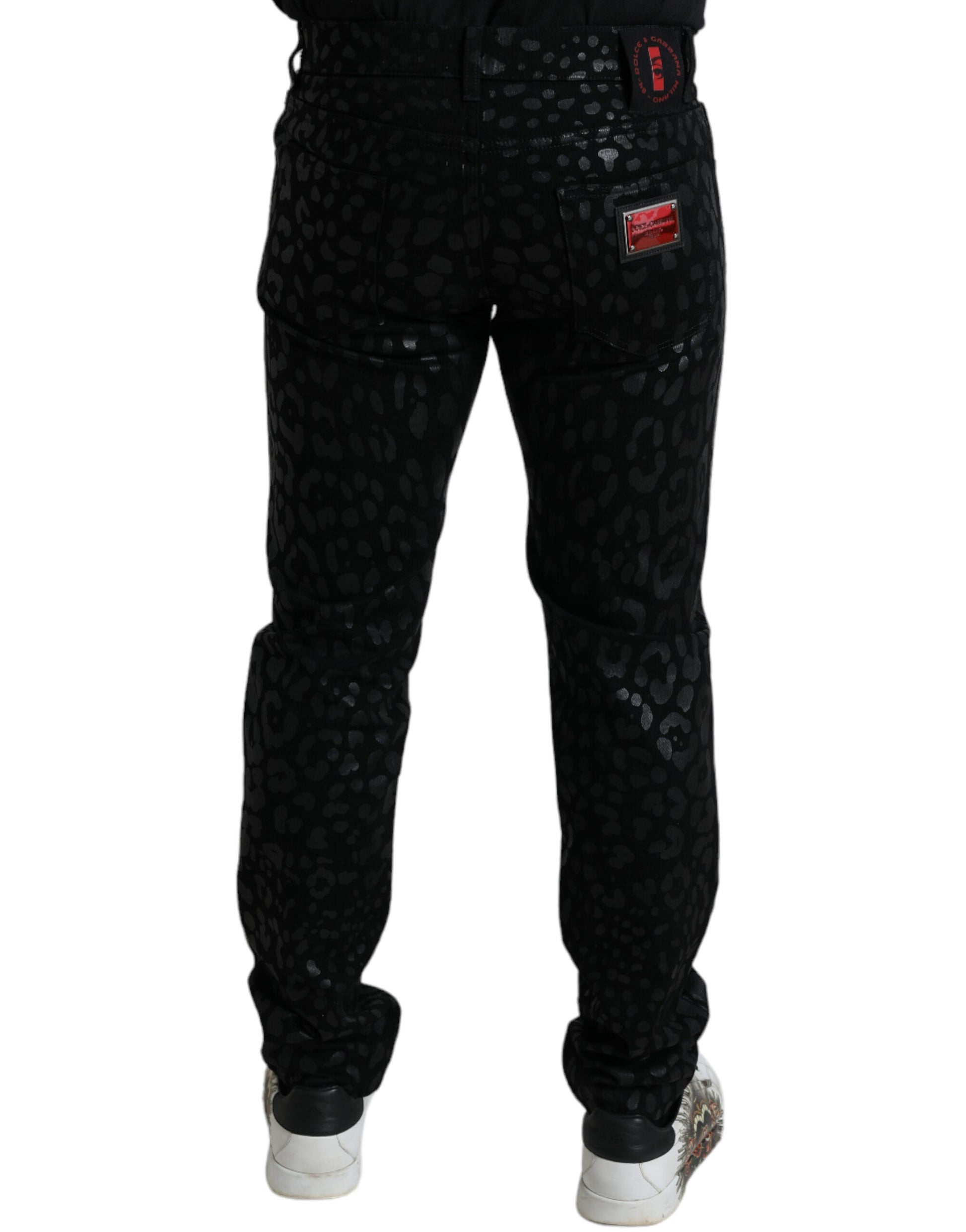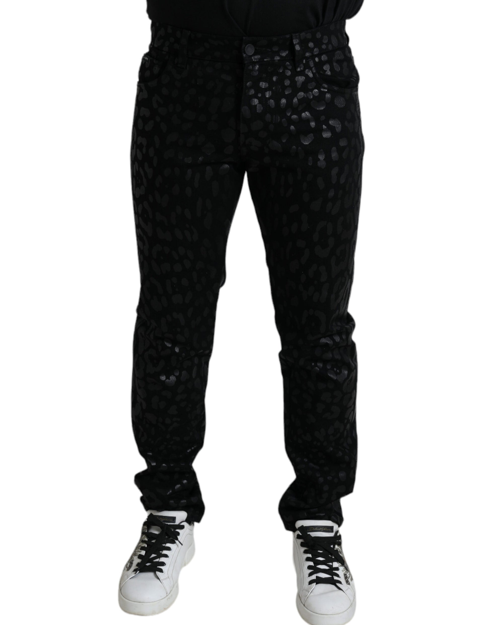 Dolce & Gabbana Black Silver Patterned Slim Cotton Jeans