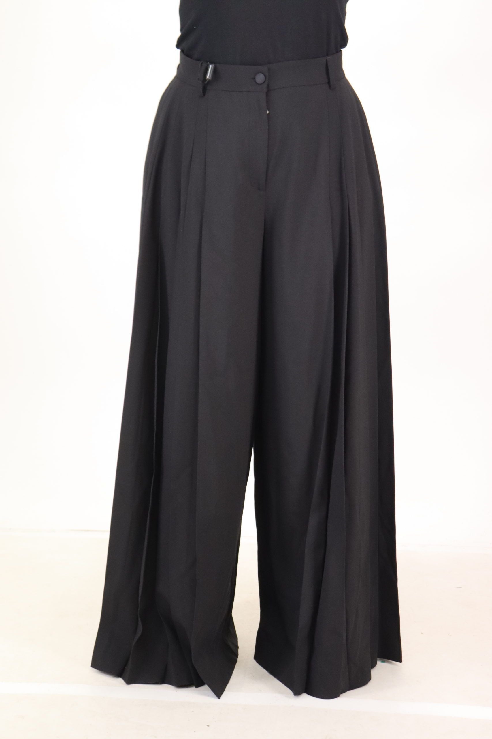 Dolce & Gabbana Black Wide Leg High Waist Women Wool Pants