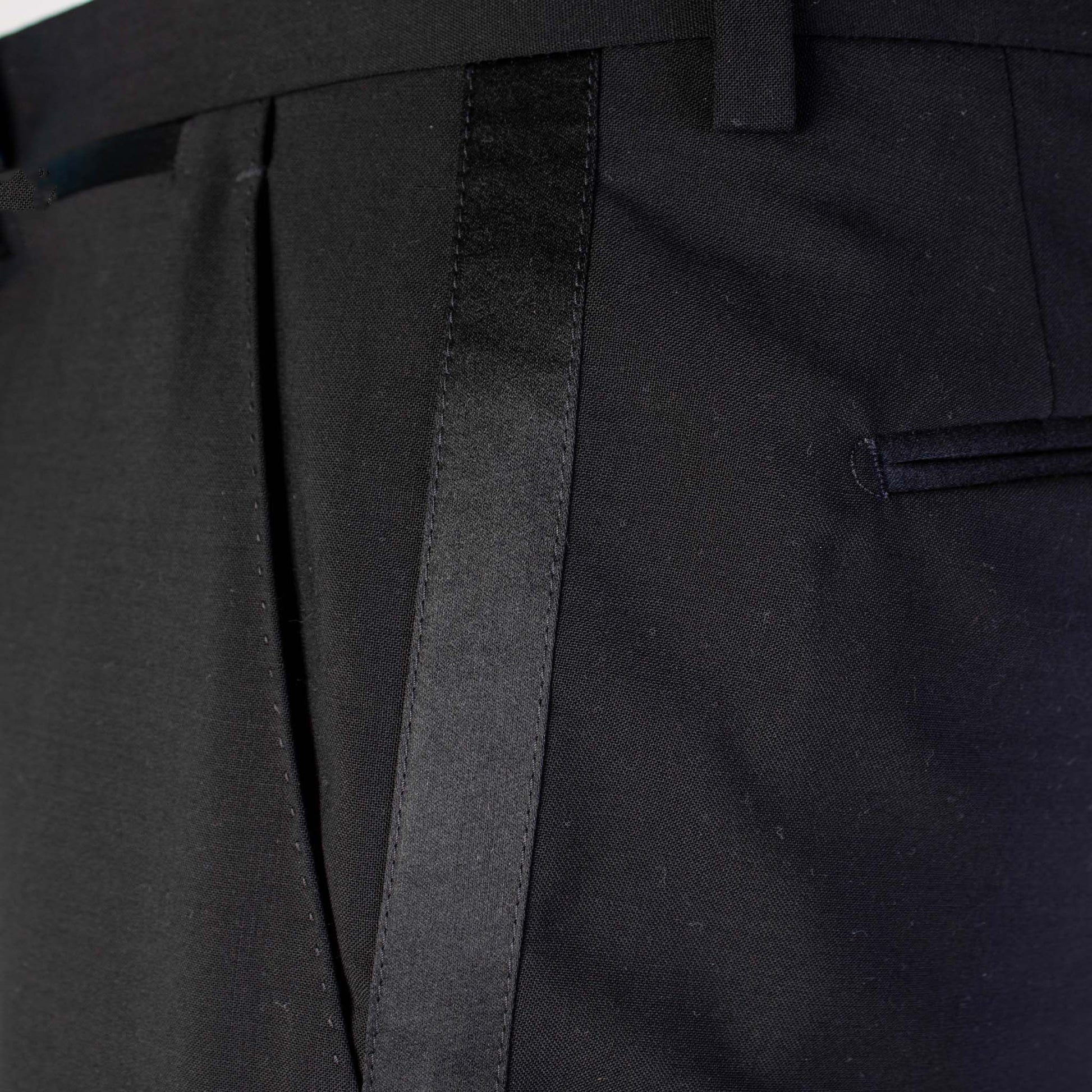 Presenting a touch of class with these sophisticated Black Tuxedo Trousers from Dolce & Gabbana. Perfect for the man aiming to impress at any formal occasion, these trousers feature a silk band along the legs for an added dash of elegance. Designed with practicality in mind, they come with side pockets, a zip closure complemented by a satin button, and additional rear pockets secured with buttons. Crafted in Italy with superior quality wool, they promise regular fit comfort.