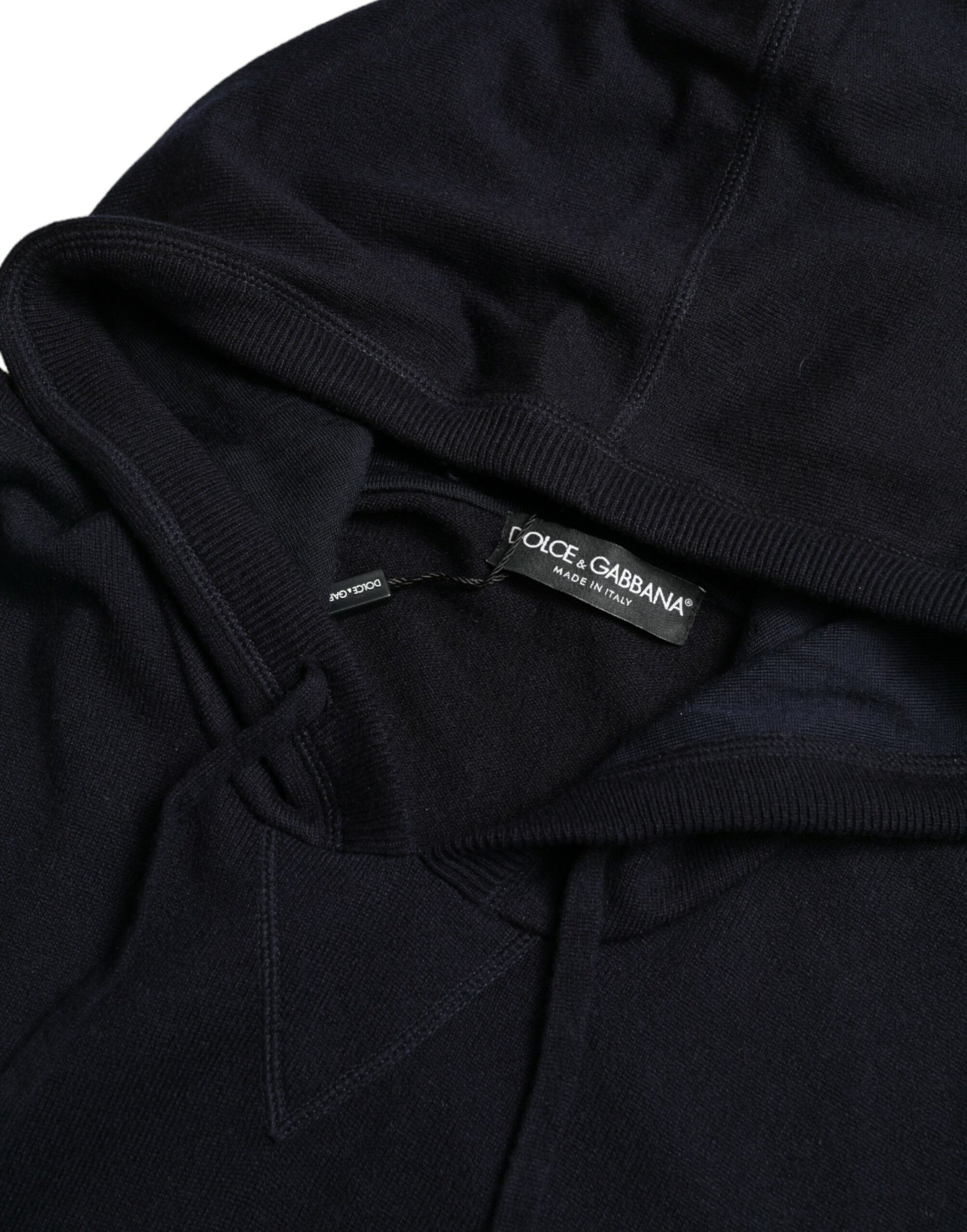 Dolce & Gabbana Blue Cashmere Hooded Pullover Sweater