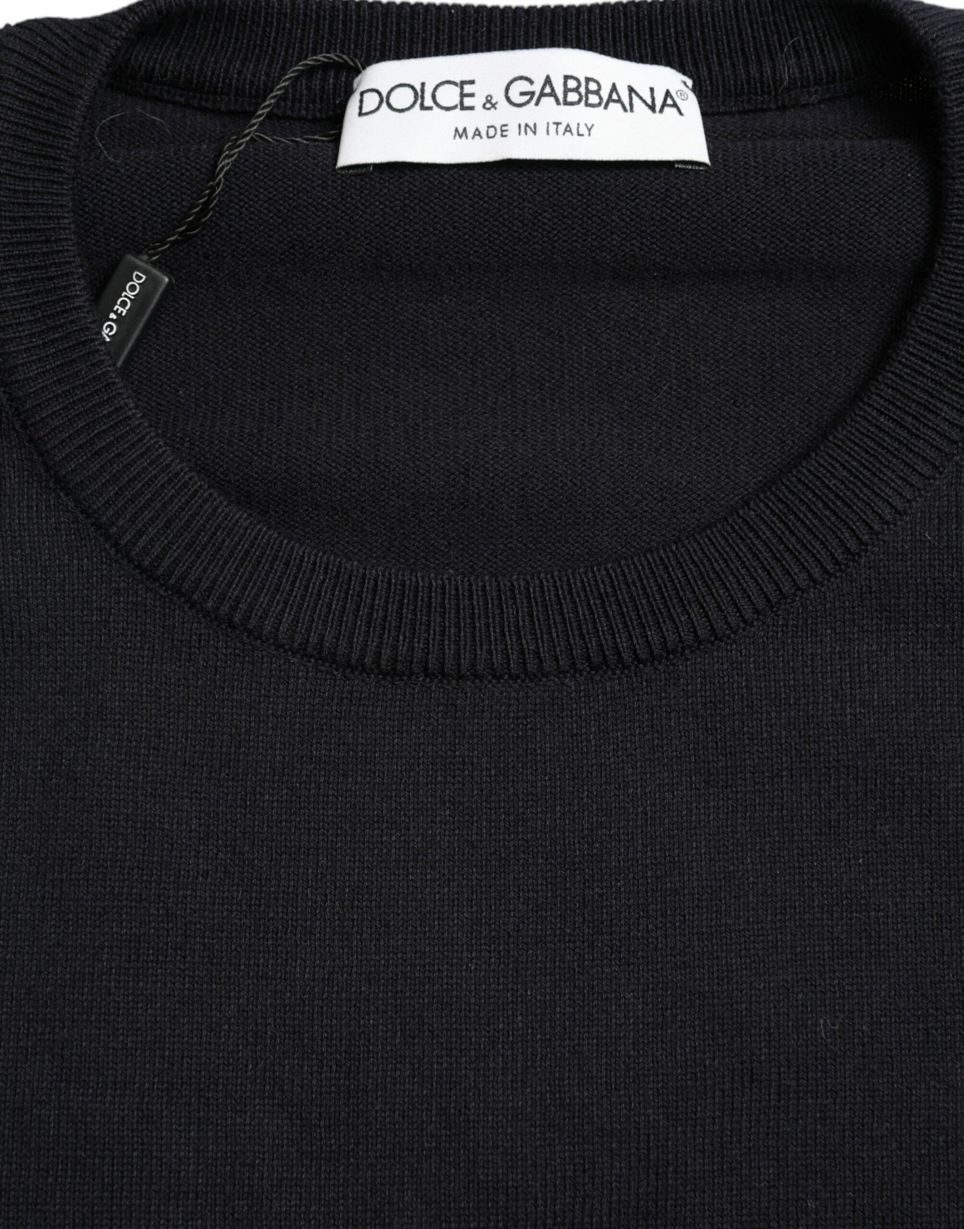 Dolce & Gabbana Blue Cotton Round Neck Pullover Sweater