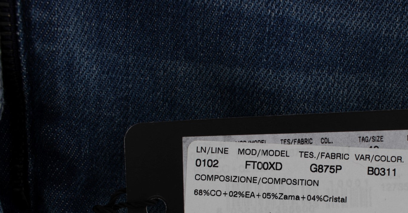 Step into a world of luxury with these exquisite Dolce & Gabbana boyfriend fit jeans, radiating charm with a blue wash and dazzling embellishments. These rare jeans are from the high-end MainLine Collection and feature crystal heart Roses, evoking the beauty of an enchanted Sicily. Perfect for fashion connoisseurs looking for a blend of sophistication and relaxed style.