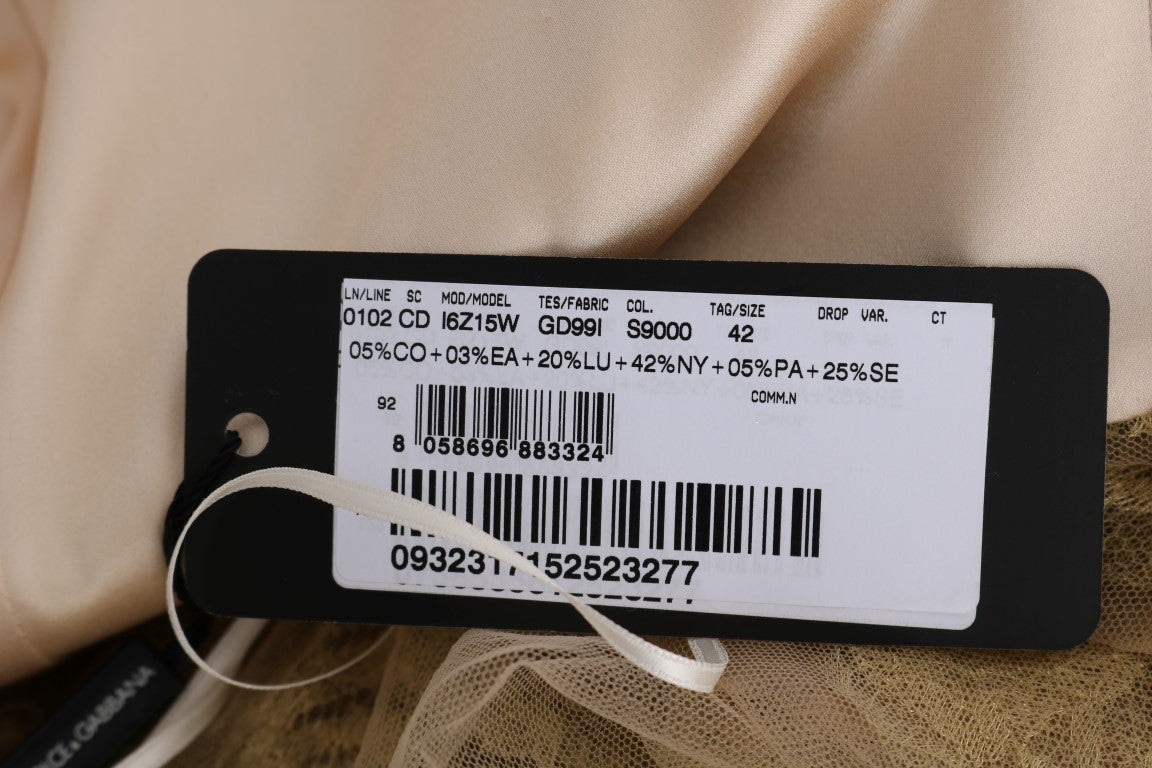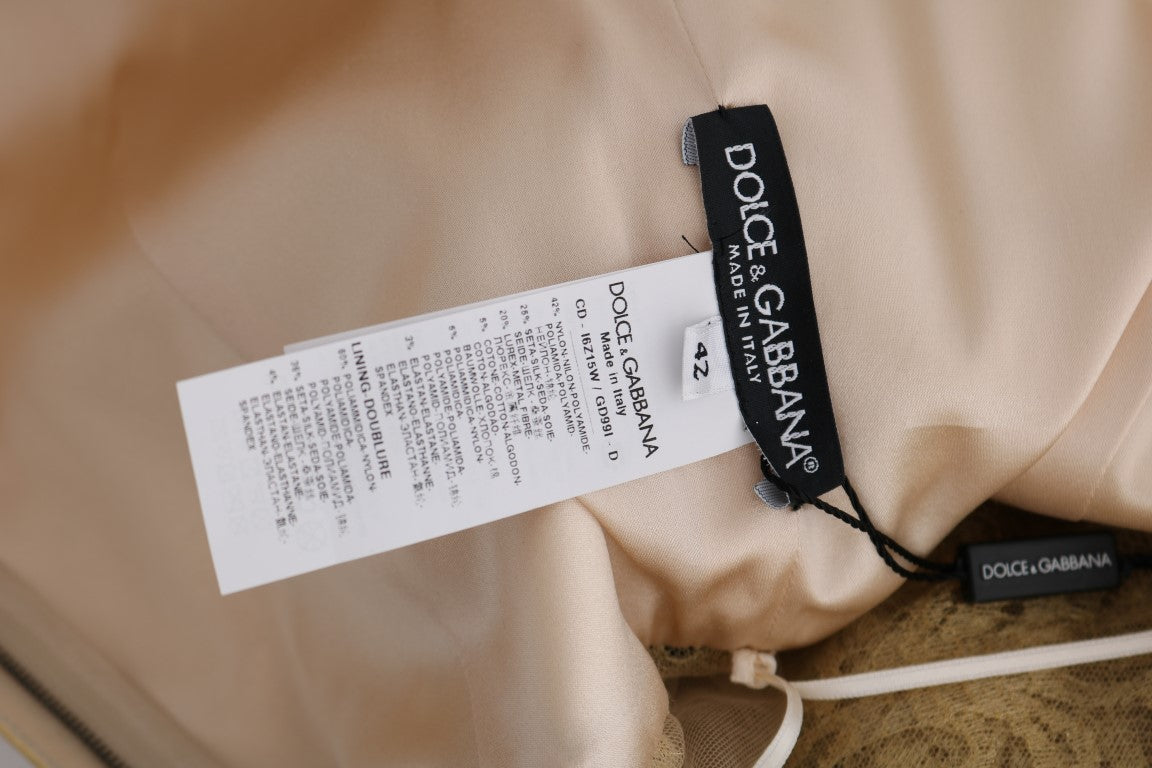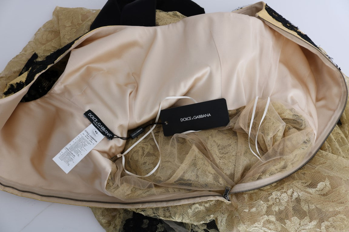Dolce & Gabbana Elegant Gold Floral Lace Gown Dress
