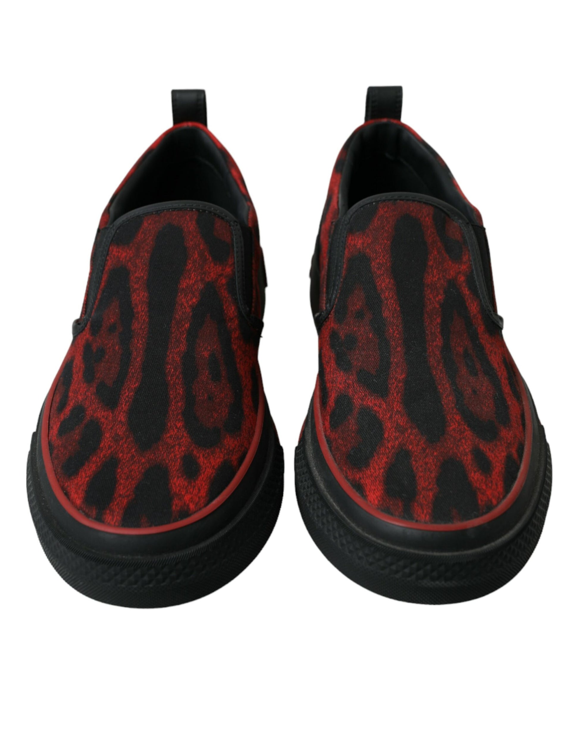 Dolce & Gabbana Red Black Leopard Loafers Men Sneakers Shoes