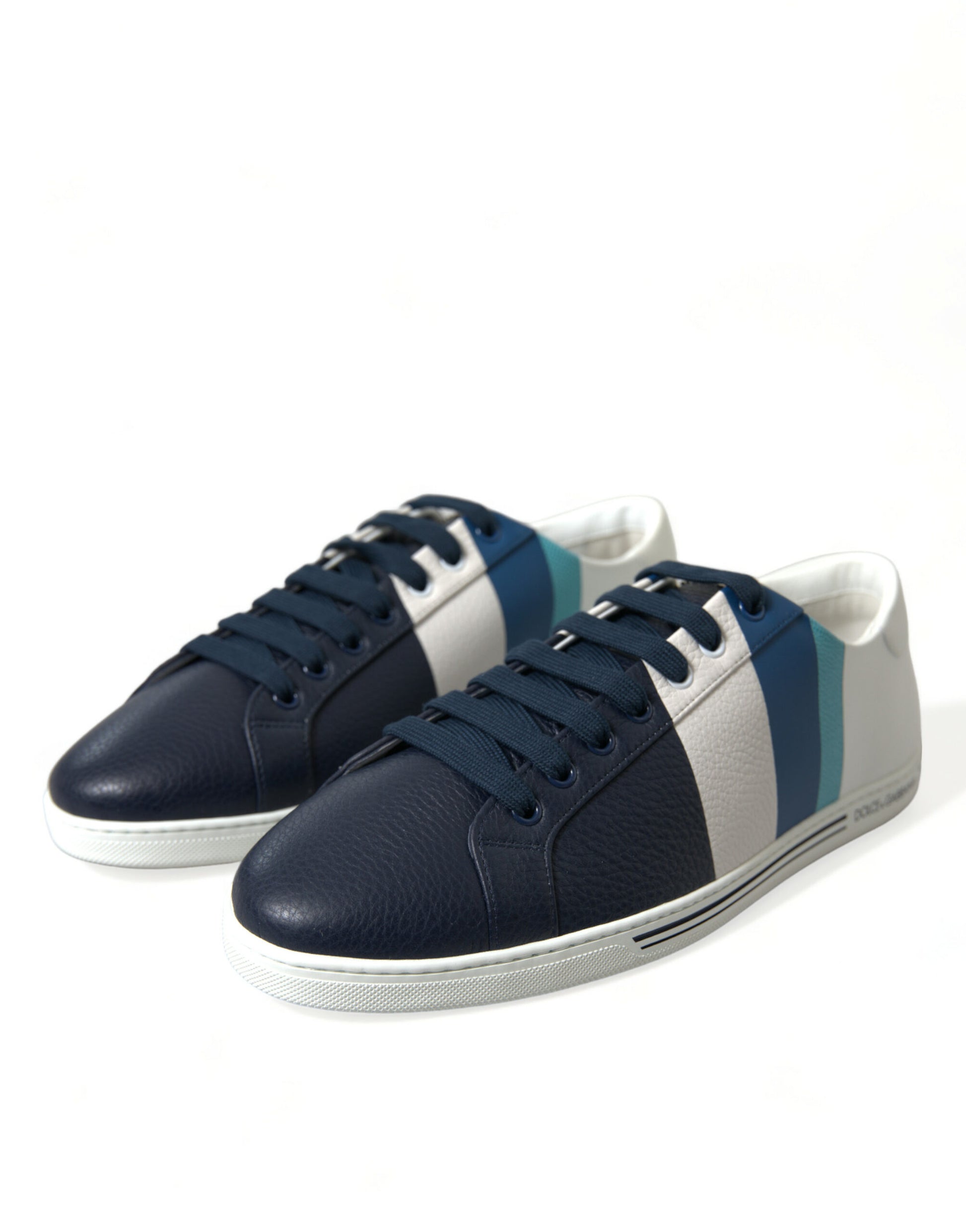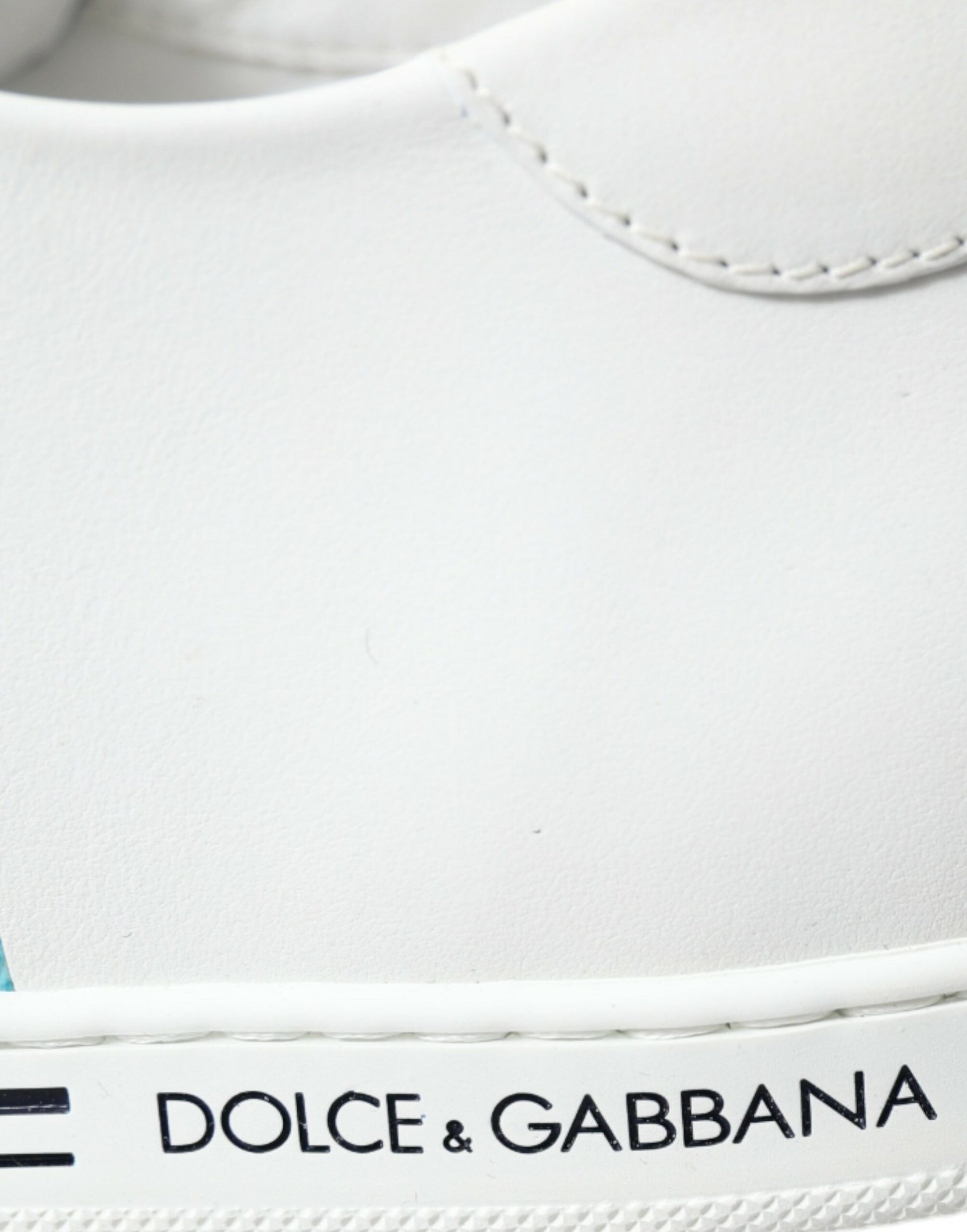 Dolce & Gabbana White Blue Leather Low Top Sneakers Shoes