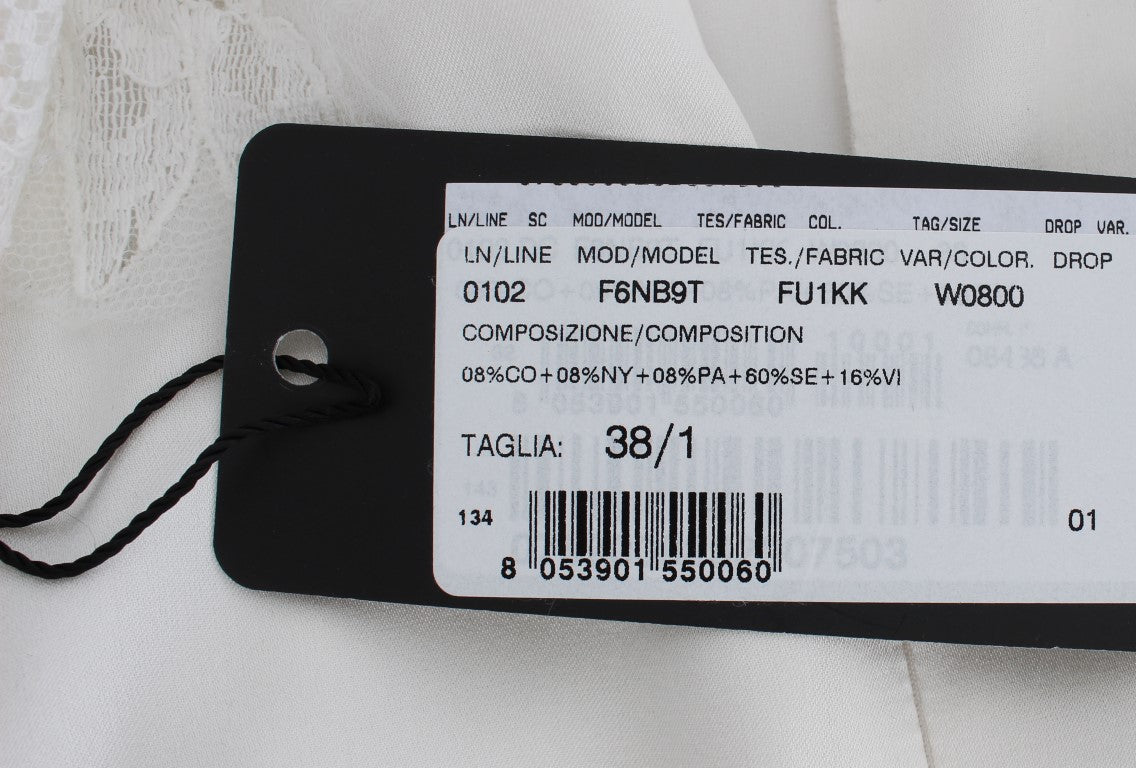 Indulge in the epitome of elegance with this stunning Dolce & Gabbana full length dress. This piece is the perfect blend of luxury and style, featuring a beautiful white base adorned with intricate black and brown floral lace. Designed to accentuate your figure, it features a sleek back zipper closure and is lined with a comfortable silk stretch blend for a flawless fit. Impeccably crafted in Italy, it bears the signature of high fashion with discreet logo details. Embrace the grace of Dolce & Gabbana and make a statement at any high-end event.