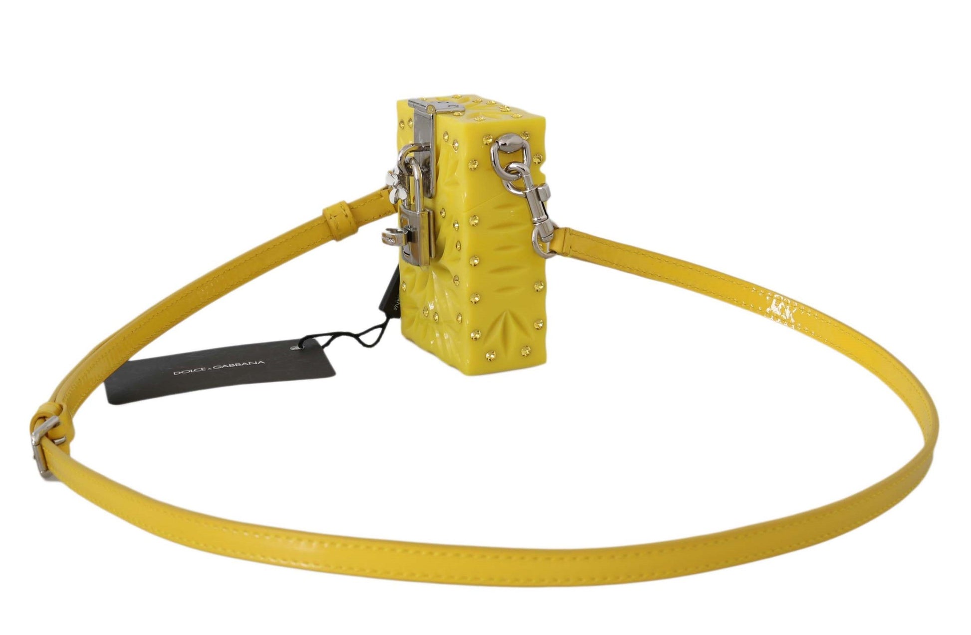 Indulge in the epitome of luxury with this exquisite Dolce & Gabbana cigarette case holder. A fusion of glamour and elegance, this accessory is perfect for adding a touch of sophistication to any ensemble. Crafted with high craftsmanship in Italy, it features sparkling champagne crystals and is completed with a sleek silver padlock flap closure. Its adjustable and detachable silver leather strap adds versatility to this gorgeous piece. This item is not only a statement of style but also an emblem of the brand’s dedication to exquisite detailing and quality.