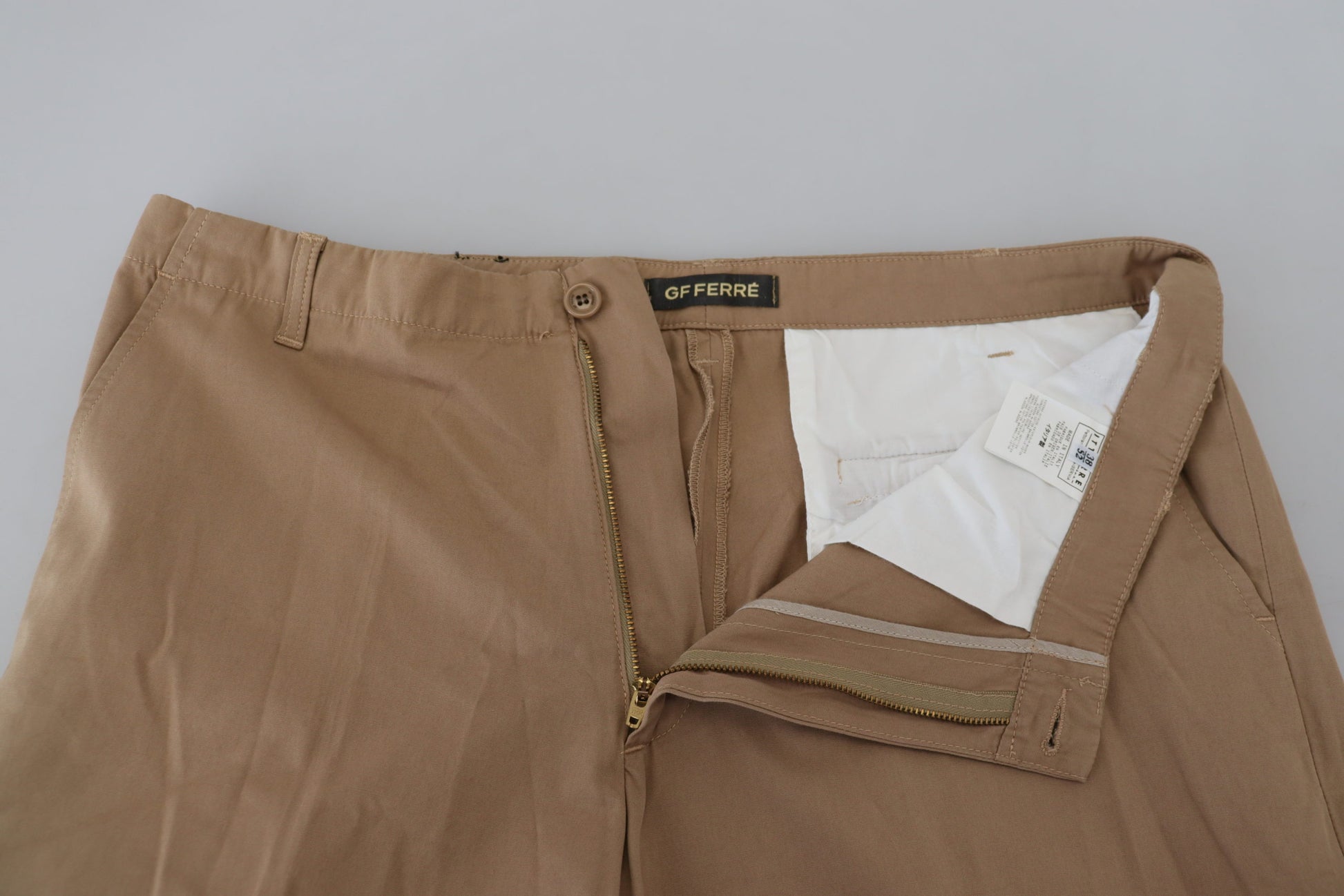 GF Ferre Brown Cotton Straight Fit Chinos Men Pants