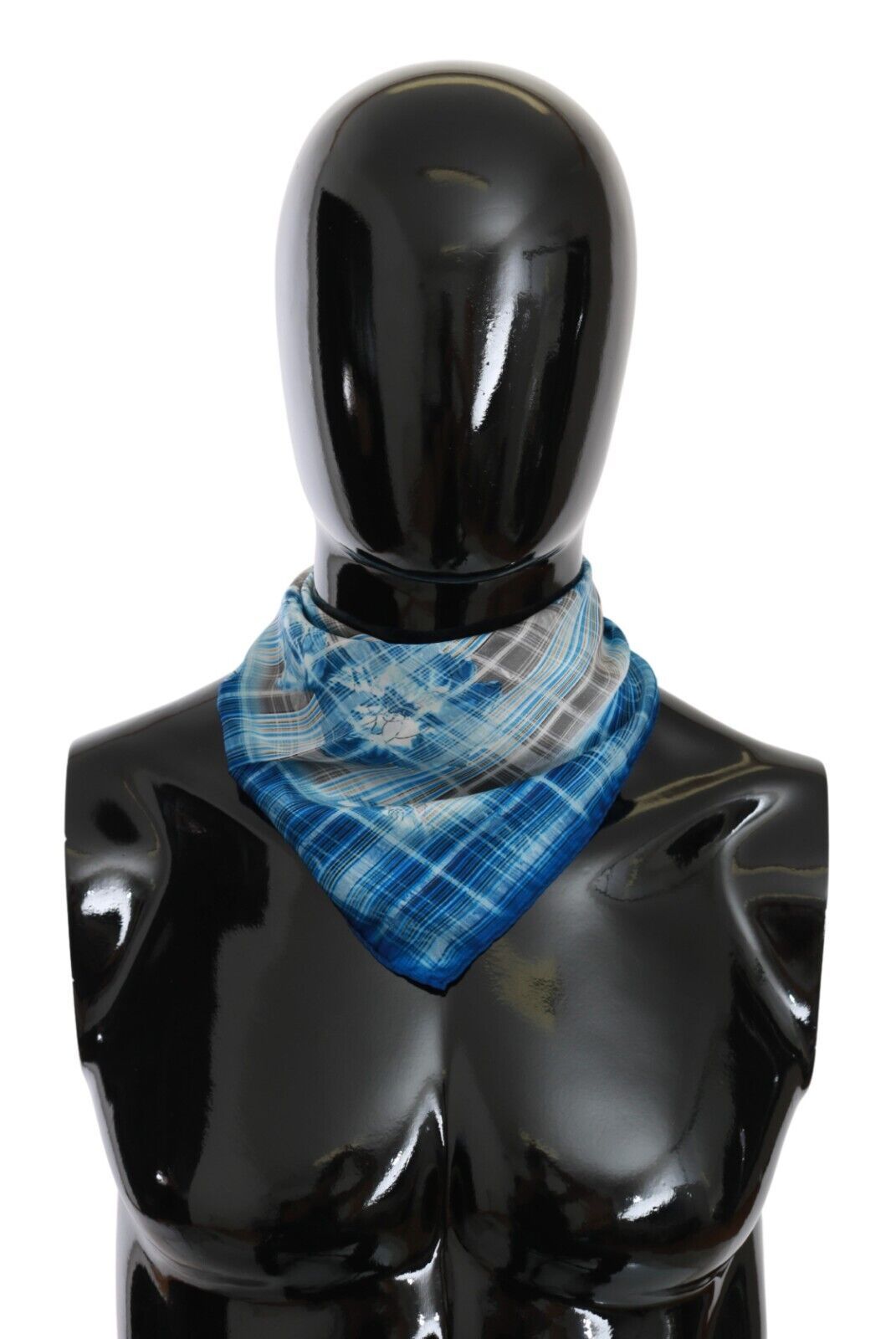 John Galliano Blue Stripe Floral Printed Bandana Cotton Square Scarf