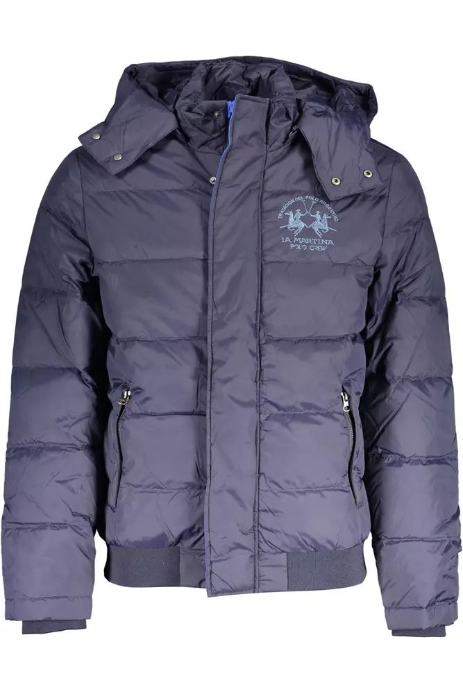 Step out in style with the La Martina long sleeves jacket, the ultimate blend of comfort and sophistication. This versatile piece comes with a detachable hood, perfect for adjusting to the unpredictable weather. Featuring both external and internal pockets, it offers ample space for your essentials, while the intricate embroidery adds a touch of luxury. Securely fastened with both a zip and buttons and embellished with the iconic La Martina logo, this jacket is a statement in both function and fashion.