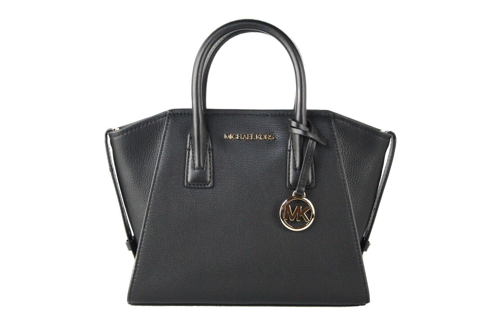 Michael Kors Avril Small Black Pebble Leather Top Zip Satchel Crossbody Bag