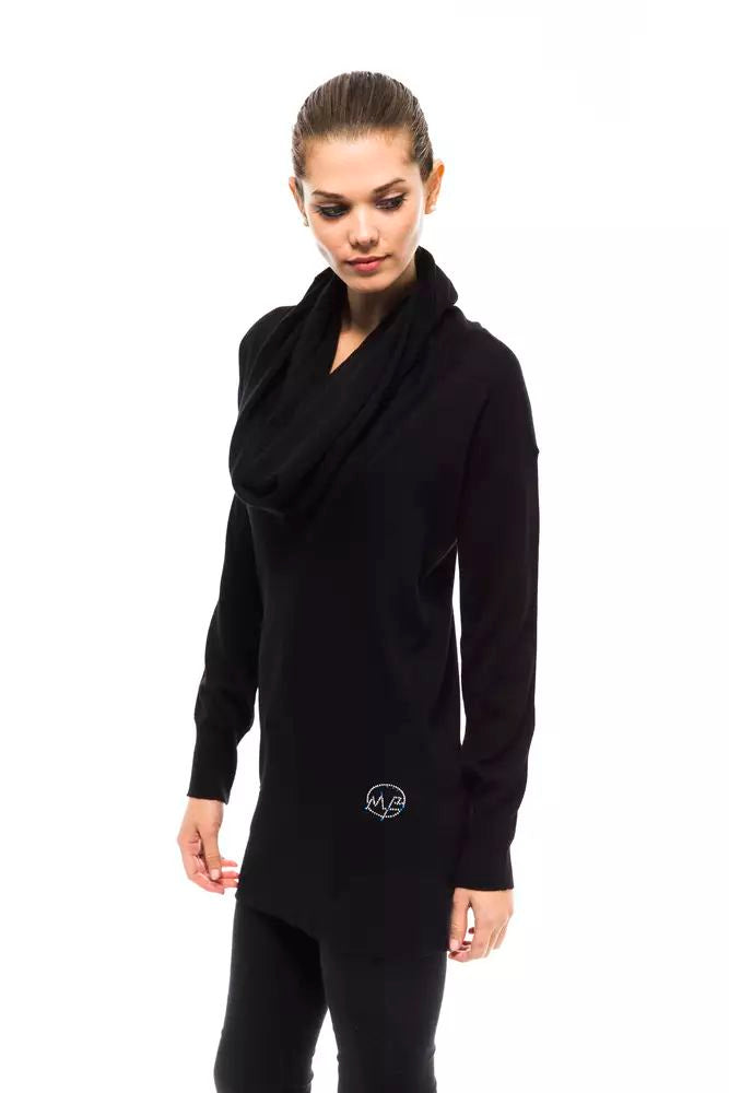 Indulge in the sheer elegance of this high collar sweater from the exquisite collection of Montana Blu. This luxurious piece promises both warmth and high fashion – the epitome of understated glamour. The front features an embellished logo that adds a touch of sparkle to your ensemble, ensuring you make a statement wherever you go.