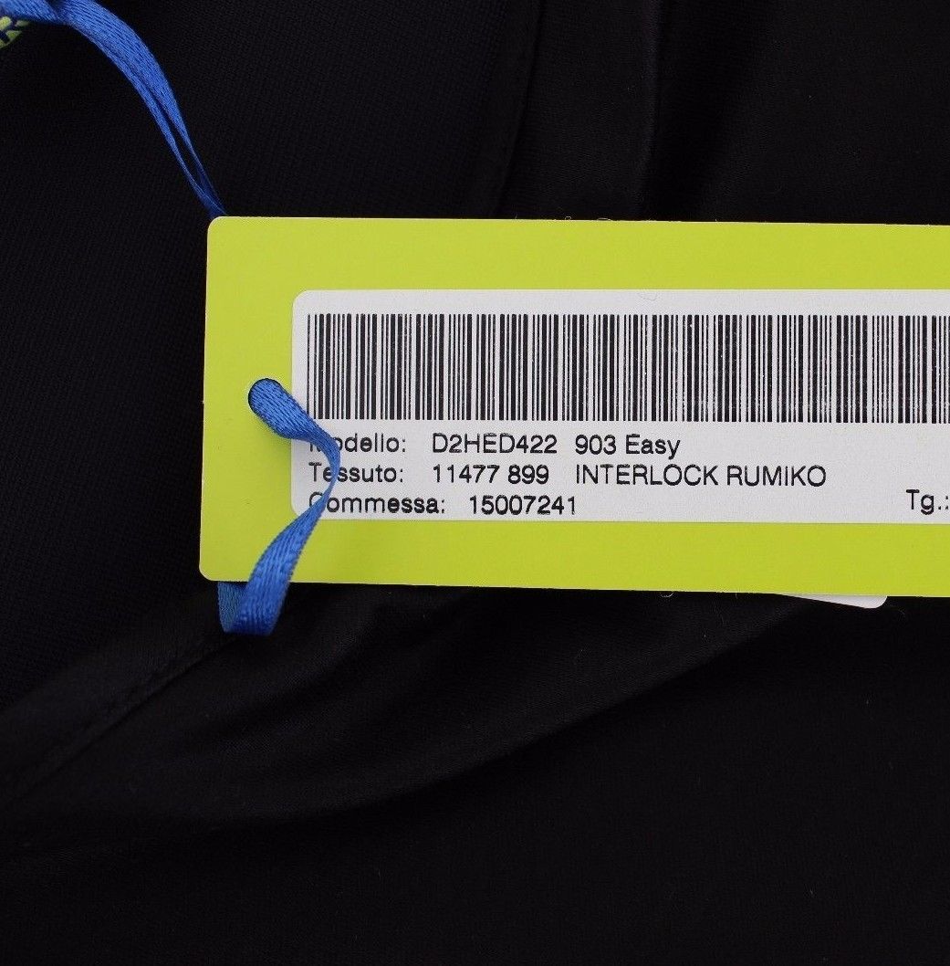 Step into luxury with this 100% Authentic, brand new Versace Jeans Couture black shift dress. Perfect for an evening out or a high-profile event, this Italian-made dress showcases a sleek, above-knee long sleeve design, enriched with an adjustable waist strap for a custom fit. Its logo details provide a subtle nod to the prestigious brand. With a composition of modal and silk, this dress combines comfort with elegance.